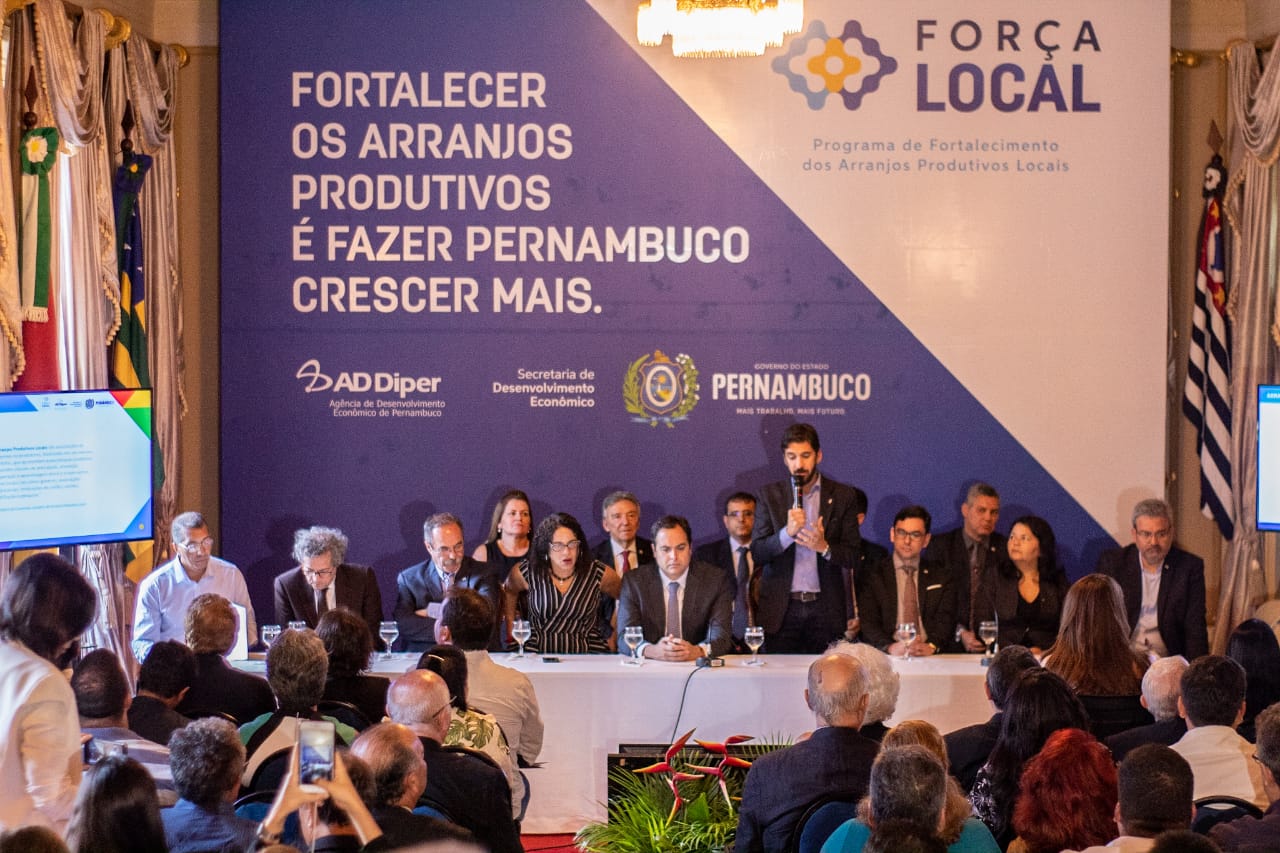 Lançado pelo Governador Paulo Câmara, o Programa para o Fortalecimento dos Arranjos Produtivos Locais em Pernambuco – Força Local pretende elevar o patamar do que é produzido em Pernambuco, pautado em cinco eixos sinérgicos: Coletividade; Integração e Diálogo; Competitividade; Visão de Negócio e Fomento. Vinte milhões de reais estão sendo aplicados pela AD Diper, de 2019 até 2022, sempre com a estratégia de ampliar os ganhos da cultura produtiva de cada região. Esse montante está sendo disponibilizados através de uma série de chamamentos públicos para a proposição e celebração de convênios com entidades sem fins lucrativos.