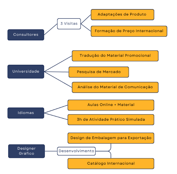 O programa oferece uma gama completa de serviços para empresas que desejam exportar, como consultorias, capacitações, adaptações de embalagem, oficinas, pesquisas de mercado, entre outros, preparando-as para competir no mercado global.