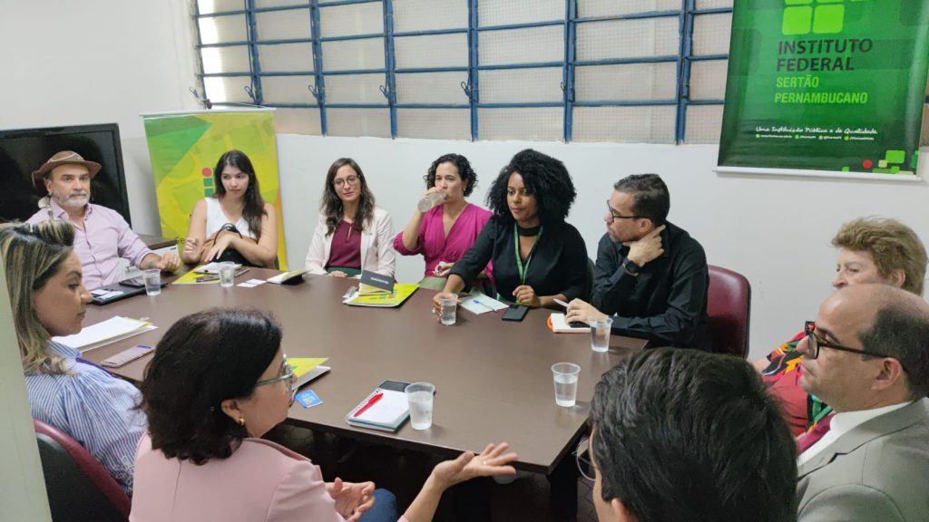 Participaram da reunião no campus IFSertãoPE, representando a Adepe: Pedro Neves Holanda, diretor de Fomento, Inovação e Arranjos Produtivos; Elen Gomes, gerente de Inovação e Arranjos Produtivos; Yanne Moreira, analista de Inovação e Arranjos Produtivos e Virgínia Fialho, gerente da Adepe Petrolina. Também estiveram presentes a secretária- executiva de Relações Internacionais de Pernambuco, Rayane Aguiar; o reitor do IFSertãoPE, Jean Carlos Alencar; os pró-reitores de Extensão e Pesquisa, Adeisa Guimarães e Francisco Gama; a coordenadora de Relações Internacionais, Sarah Rachel; a servidora do campus Petrolina Zona Rural, Tatiane Xavier; o reitor e vice-reitora da Univasf, Télio Nobre e Lucia Marisy.