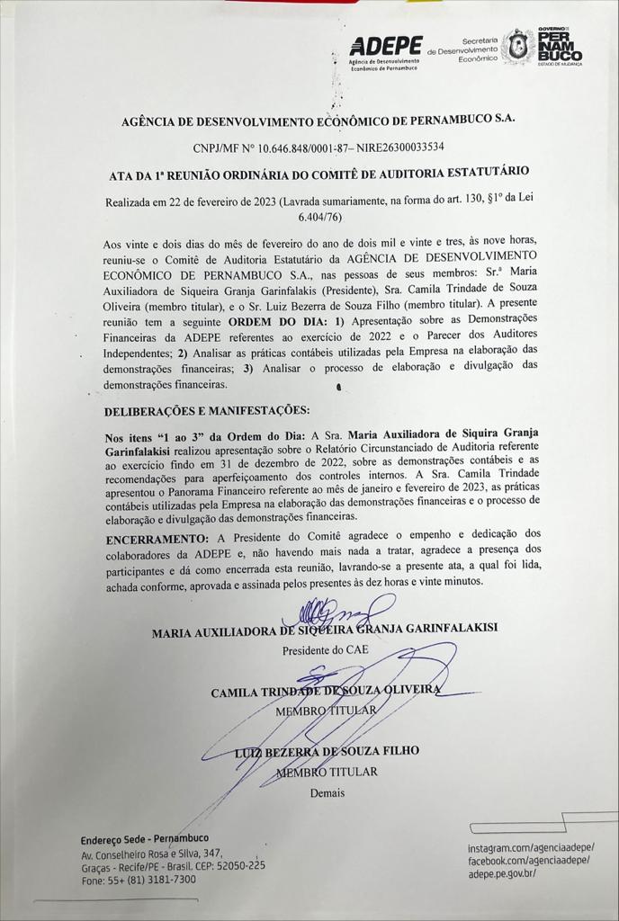 Estatutário 2025 3ª Ata 2ª Ata 1ª Ata Estatutário 2024 6ª Ata 5ª Ata 4ª Ata 3ª Ata 2ª Ata 1ª Ata Estatutário 2023 6ª Ata 5ª Ata 4ª Ata 3ª Ata 2ª Ata 1ª Ata Compartilhe:NotíciasAcompanhe as últimas notíciasResultados//Adepe divulga aprovados para terceiro edital do Programa PE Produzfevereiro 2026DESENVOLVIMENTO// Em 2025, Adepe consolida avanços em infraestrutura, incentivos fiscais e atração de investimentos em Pernambucojaneiro 2026Cerimônia na Adepe homenageia marcas de bebidas pernambucanas premiadas na Argentina Spirits Awardsdezembro 2025Centro Cultural Mercado Eufrásio Barbosa (MEB) recebe Residência Artística – Brasil x Françanovembro 2025