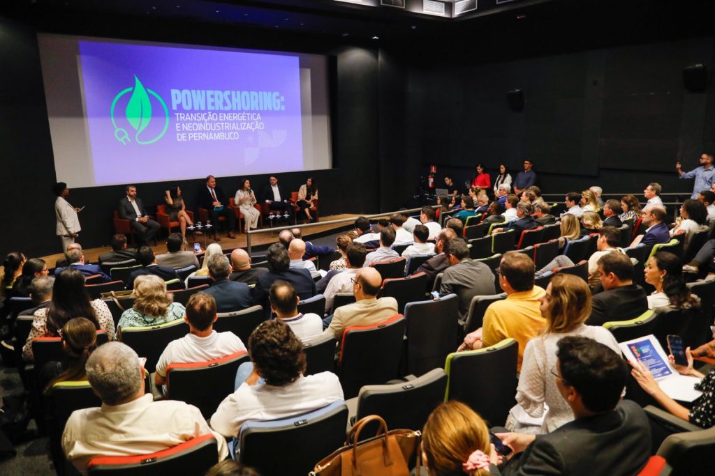 “O mundo enxerga o Brasil como um grande celeiro de oportunidades, dialogando com a economia verde. Desta forma, Pernambuco se posiciona de maneira muito importante, enquanto temos um grande potencial de desenvolvimento de energia sustentável que já está em implantação no Estado”, destacou a governadora Raquel Lyra que comandou, nesta terça-feira (23), no cinema do Porto Digital, Bairro do Recife, a abertura do Fórum Powershoring: Transição Energética e Neoindustrialização de Pernambuco. O evento, realizado pela Secretaria de Desenvolvimento Econômico de Pernambuco (SDEC), em parceria com o Banco de Desenvolvimento da América Latina e Caribe – CAF; a International Finance Corporation – IFC; e o Instituto Clima e Sociedade – iCS, teve como objetivo traçar caminhos para a materialização e aceleração de investimentos em atividades produtivas e empresariais de baixo carbono no Estado.